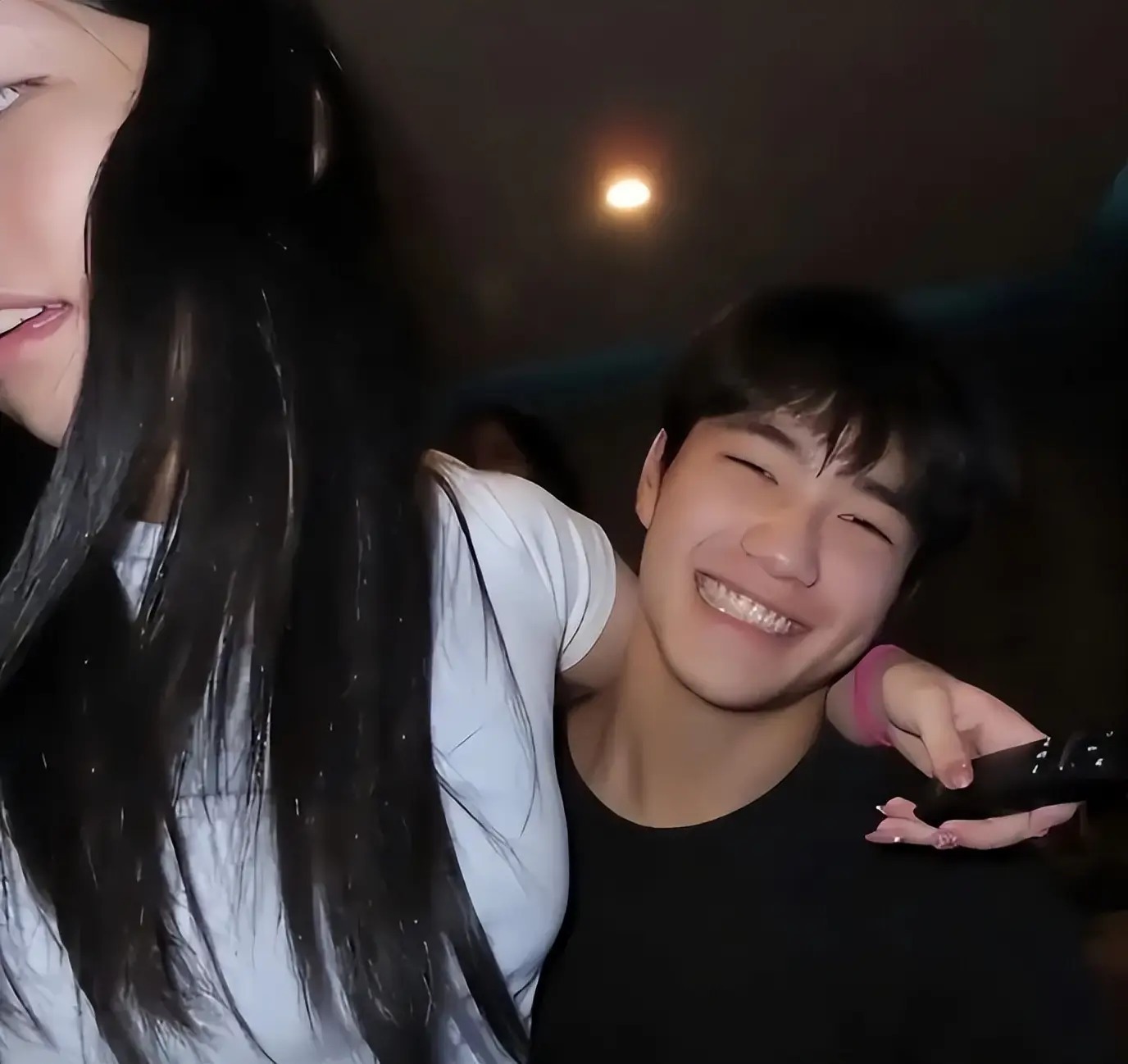 而另一张照片中,女生则一手仍搭在joe的脖子上,而脸则是转了过来,能看到女生的半张脸,年龄看起来和joe相仿,大概十六七岁。女生留着长发,虽然是素颜出镜,但能看出颜值还是十分高的,而joe则面对镜头咧嘴笑,别提多幸福了。能看出两人正在热恋期,joe如此大方在网上撒糖颇有曹格的性情。